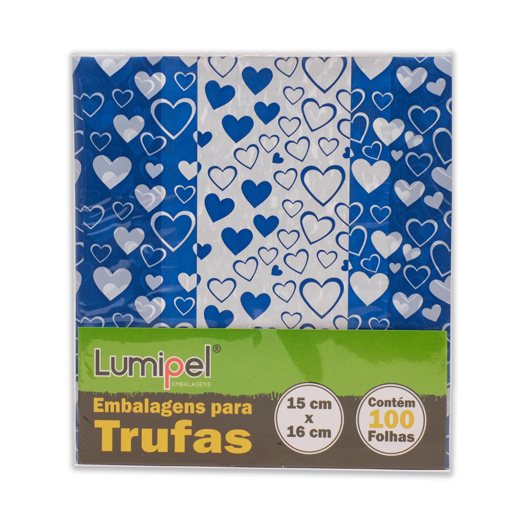Embalagem para Trufas Lumipel – Estampa Coração Azul