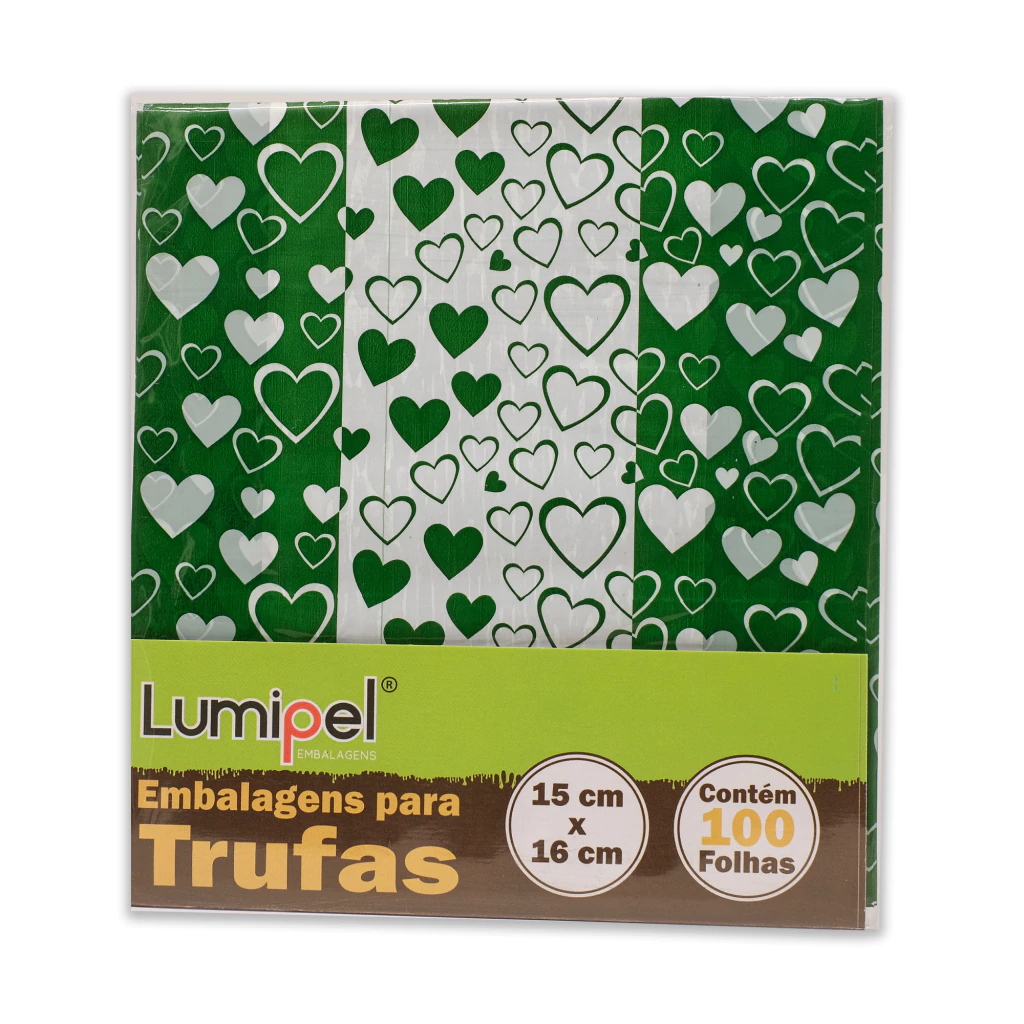Embalagem para Trufas Lumipel – Estampa Coração Verde 15x16 cm