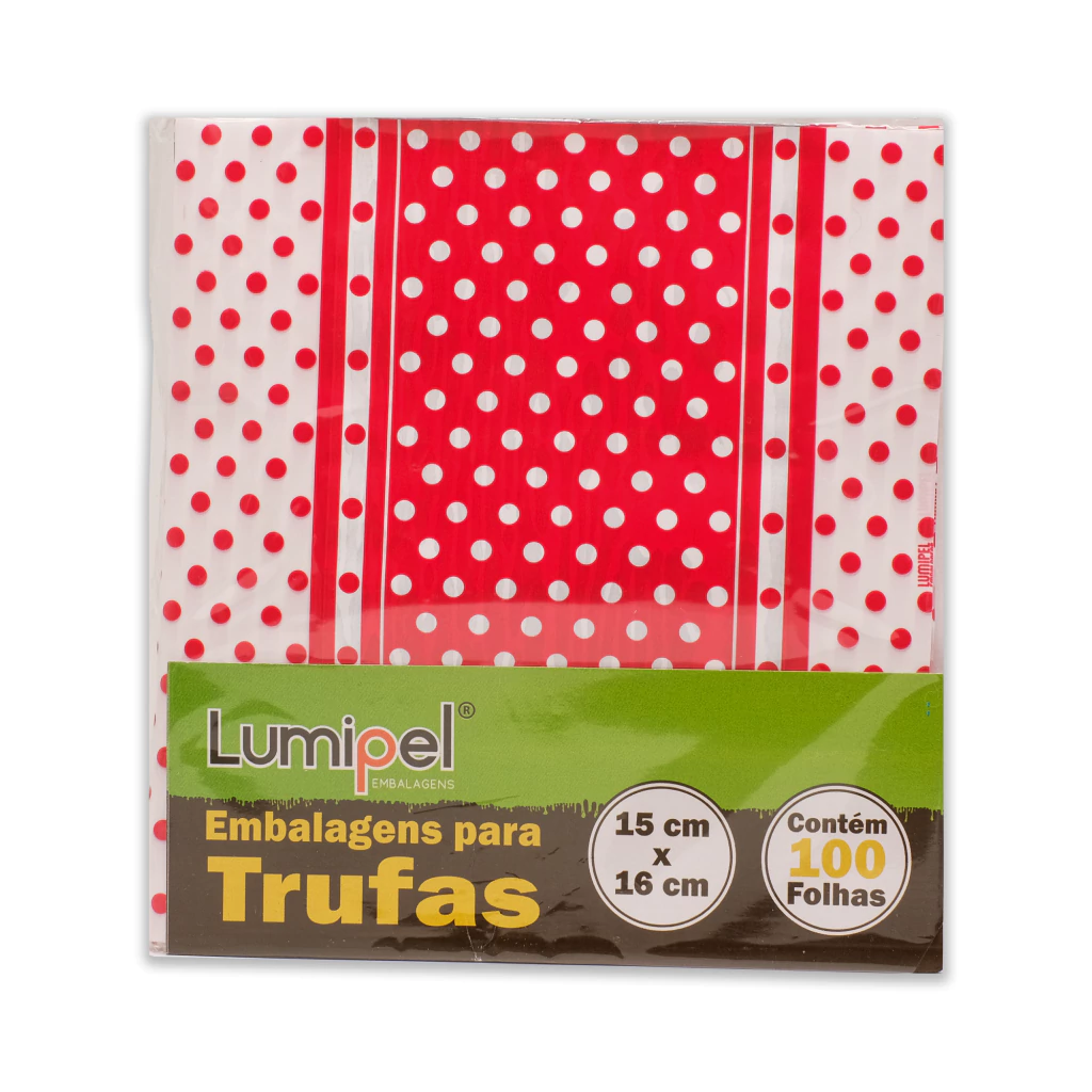 A Embalagem para Trufas Lumipel é perfeita para proteger e valorizar trufas e doces artesanais, mantendo o sabor, o brilho e a textura preservados até o consumo. A estampa Poá Vermelho Branco traz um visual alegre e clássico, ideal para deixar seus produtos ainda mais chamativos e encantadores.