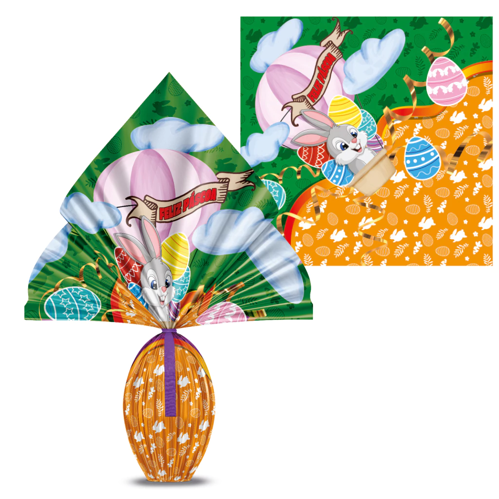 Embalagem para Ovo de Páscoa Lumipel – Coelho Balão da Alegria Verde (35x35cm)