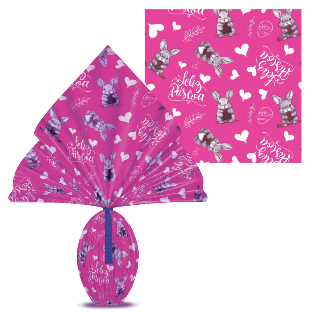 Embalagem para Ovo de Páscoa Lumipel – Coelho Chocolate Pink (30x30cm)
