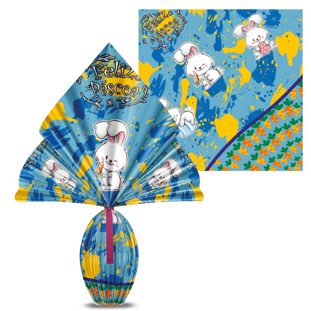 Embalagem para Ovo de Páscoa Lumipel – Coelho Splash Azul Claro 30x30 cm