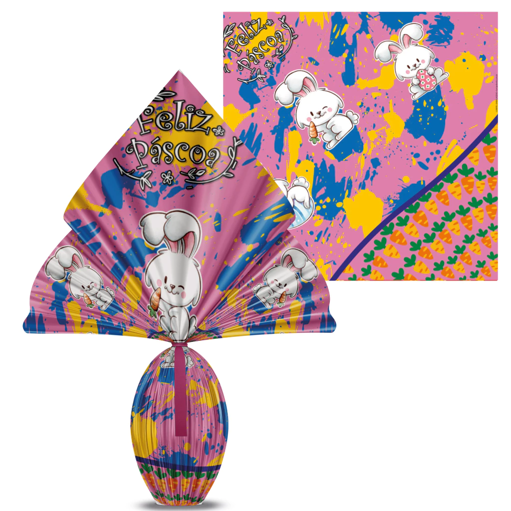 Embalagem para Ovo de Páscoa Lumipel – Coelho Splash Rosa (30x30cm)