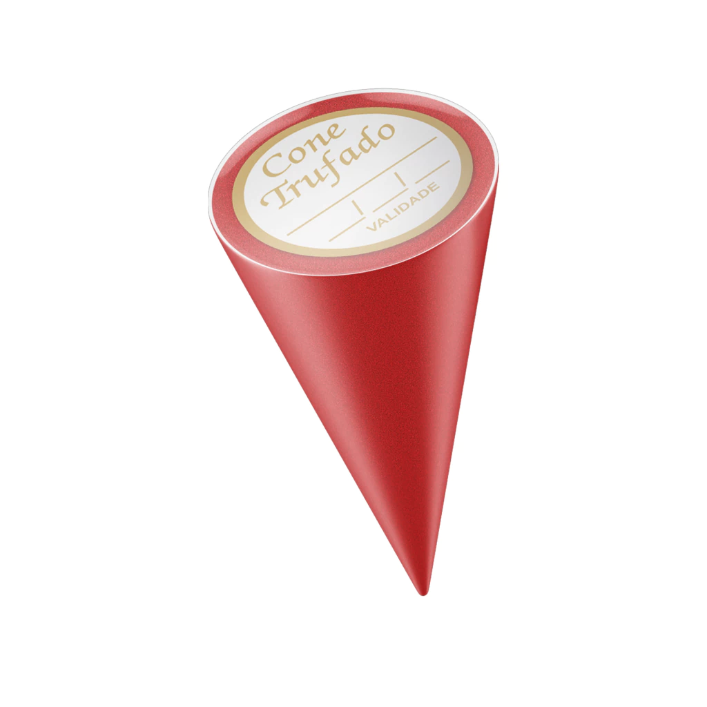 Apresentação profissional: acompanha 50 etiquetas “CONE TRUFADO”, padronizando e destacando sua produção.